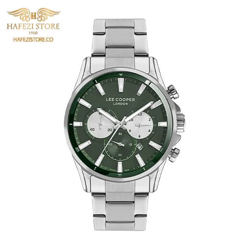 ساعت مردانه لی کوپر | مدل LC07167.370، از لحاظ زیبایی شناسی ساعت، مدلی اسپورت و روزمره است. قاب و بند ساعت، به رنگ نقره ای است. صفحه ساعت، سبز فوق العاده زیبایی است که ساعت را از حالت یکرنگی و سادگی خارج کرده و باعث شده است که از تنوع رنگی بهره مند شود.