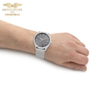 قاب و بند ساعت مردانه کلوین کلین مدل 25200352، نقره ای است و صفحه ساعت نیز به رنگ نوک مدادی درآمده است که این تضاد رنگی روشن و تیره، ویژگی بارز زیبایی این ساعت است.