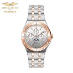 زیبایی ساعت مردانه کنتیننتال مدل GM815130-21501، به استفاده از رنگ های به روز و فوق العاده جذاب است. قاب و بند ساعت، با استفاده از رنگ های رزگلد و نقره ای طراحی و ساخته شده است. رنگ رزگلد در حاشیه صفحه و در قسمت تاپ رینگ آن نیز دیده می شود. صفحه ساعت به رنگ متال است و با رنگ های بدنه و المان های داخل صفحه زیبایی فوق العاده ای خلق کرده است.
