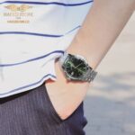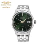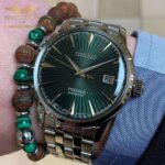 در بررسی ظاهری ساعت مچی مردانه سیکو مدل SRPE15J1 با طراحی کلاسیک ، اولین چیزی که به چشم می خورد جلوه رنگی جذاب استیل و سبز می باشد که به کیفیت و زیبایی ساعت افزوده است. در بررسی ریزتر، هم نشینی تنها عقربه ها و عقربه آنالوگ با ترکیب منظم نمای جذابی را در بطن این ساعت به وجود آورده است. همینطور این ساعت دارای بند نقره ای از جنس استیل و استیل ضد زنگ و صفحه سبز رنگ می باشد که مجموع این ها در کنار هم جلوه ی کلاسیک چشم نواز به ساعت مچی بخشیده است و آن را مناسب ست کردن با لباس های مجلسی و کلاسیک می کند.