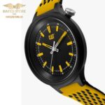 به لحاظ مدل و ظاهر،ساعت مچی مردانه کاترپیلار | مدل LL.111.27.117، در طیف رنگی خود نماد کاترپیلار را به نوعی یدک میکشد (یعنی ترکیب رنگ زرد و مشکی). بند سیلیکونی با کیفیت و رنگ زد با المان های لوزی شکل به رنگ مشکی روی بدنه این مسئله را تاید میکند.