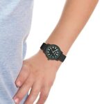 بدنه این ساعت از جنس رزین ساخته شده است که مقاومت بالایی در برابر ضربه و شرایط مختلف محیطی دارد. همچنین بند سیلیکونی ساعت موجب راحتی استفاده و احساس سبکی در هنگام پوشیدن آن میشود. این ترکیب از مواد با کیفیت نه تنها باعث میشود ساعت به مدت طولانی به خوبی کار کند، بلکه جلوهای اسپرت و شیک به آن بخشیده است. بند سیلیکونی قابل تنظیم است که به راحتی میتوانید آن را متناسب با اندازه مچ دست کودک خود تنظیم کنید.